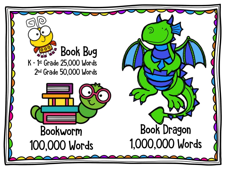 We check everyone's AR word count the first Tuesday of every month!! Read like a Book Bug, a Bookworm, or a Book Dragon!